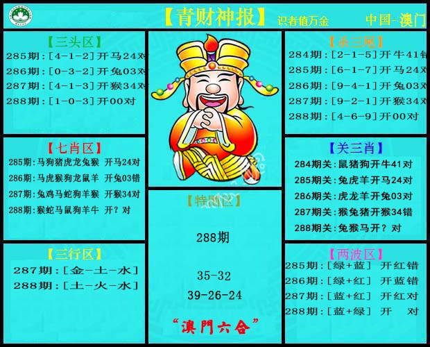 288期:澳门六合彩彩圖信封【青财神报】每期自动更新