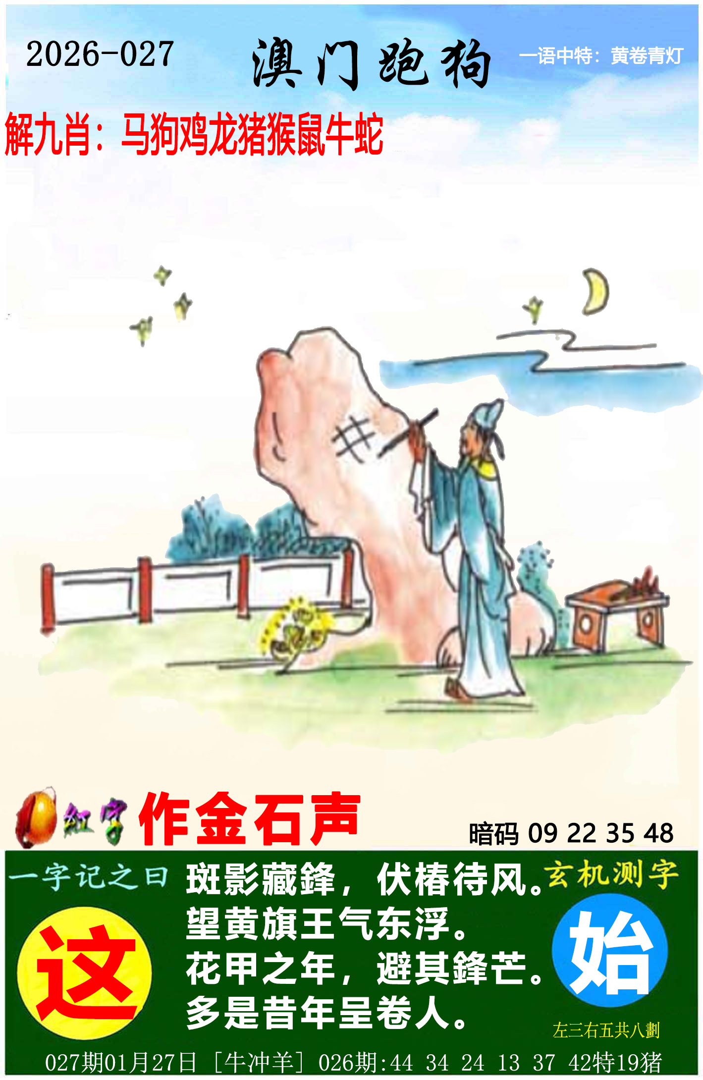 | 027期:一肖:狗 | 三码:20.32.38 |